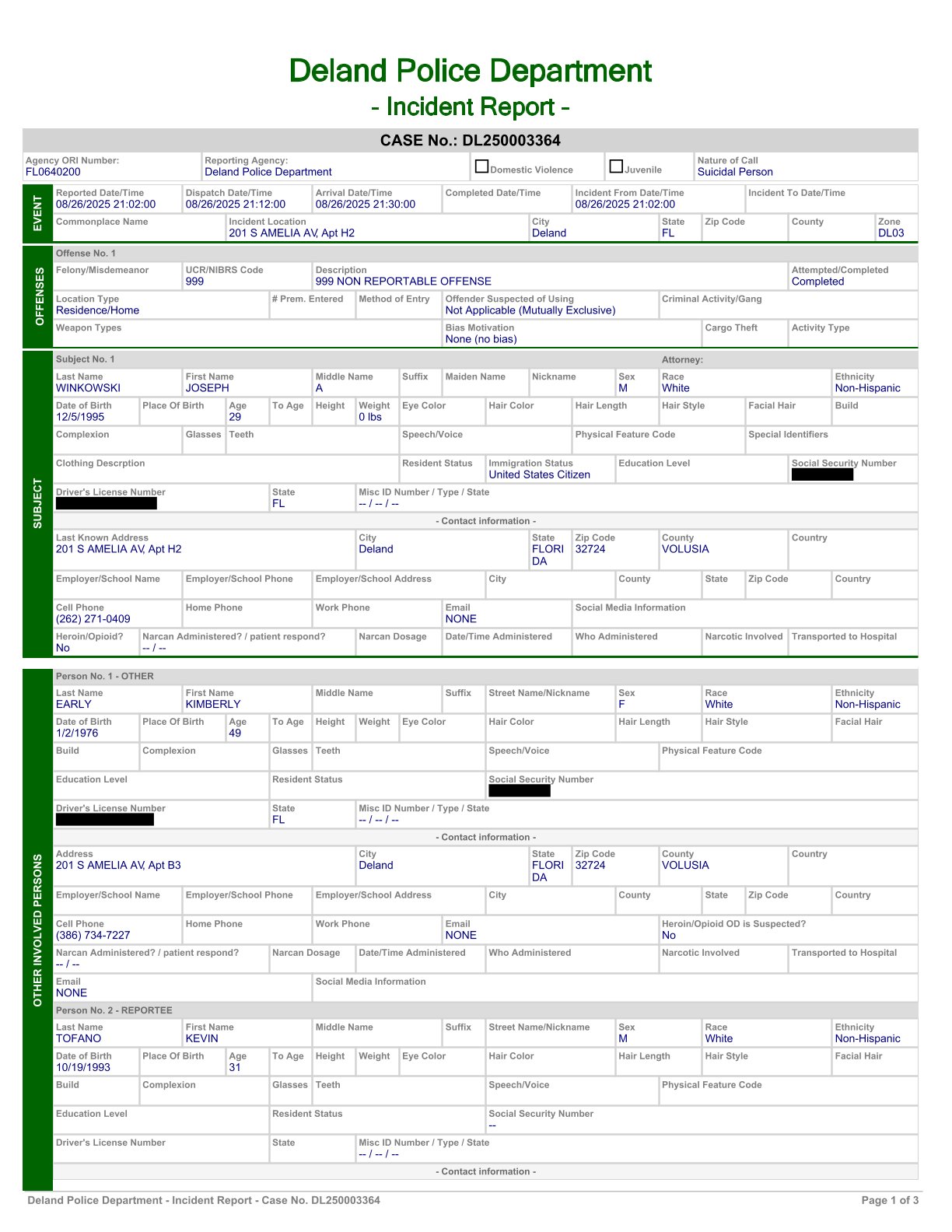 time lapse death video edit. no sound. 1:18 DeLand police department incident report. click/tap images for full size.
