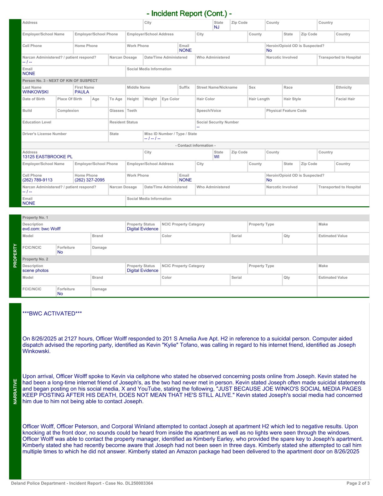 Hawaiian YouTuber, Podcaster, and Filmmaker, Tragically Passes Away at 29 Joe Winko, a creative force known for his work as a YouTuber, podcaster, and filmmaker, tragically passed away on August 14th, 2025, at the age of 29. The Hawaiian-based content creator, who was celebrated for his raw honesty, mental health advocacy, and imaginative storytelling, left a lasting impact on his audience and the online community. Winkos passing was confirmed as a result of suicide, which came as a shock to many who admired his work. His unique series, "Joe Winko Talk," became a platform where he openly discussed mental health, personal struggles, and his creative process. With a blend of horror storytelling and personal reflection, Winkos content resonated deeply with viewers who found comfort in his vulnerability. Known for his distinctive on-screen presence, often sporting a red bandanna and cape, Winko was a voice for those who felt misunderstood. His openness about his battles with mental health, particularly depression and loneliness, made him a relatable figure for many fans. His work created a space where people could feel less alone, offering not just entertainment, but also a sense of connection. Winkos tragic passing has left his fans, friends, and fellow creators in mourning. Tributes have flooded social media, with many expressing their gratitude for the ways his work helped them during their darkest times. His legacy as both a creative and a mental health advocate will continue to inspire those who knew him. Joe Winko will be remembered for his creativity, his honesty, and his unflinching commitment to sharing his story with the world. 08.29.25, documentingreality.com, Joe Winko, 29, 12.05.1995 - 08.14.2025, lived a miserable life. He was born in Wisconsin. His mother died of a drug overdose two weeks after giving birth to Joe Winko and his twin brother. She was 14 years old at the time of her death. Custody of him and his twin brother was transferred to his biological father in early 1996. Shortly afterward, his father attempted to drown Joe Winko and his twin brother in a sink. Joe Winko survived, but his twin brother died. Joe Winko's biological father was arrested in 1996, sentenced to life in prison, and murdered by inmates in 1998. He was 21 years old at the time of his death. Joe Winko was later adopted and cared for by foster parents. Joe Winko and his adoptive father had a relatively good relationship, but his relationship with his adoptive mother was strained. According to Joe Winko's YouTube channel, his adoptive mother was authoritarian. Joe Winko graduated from high school, went to college, and worked as a retail worker. Joe Winko suffered from type 1 diabetes, severe kidney failure, and mental health issues due to his biological mother's drug abuse and brain damage, presumably caused by his biological father's attempted drowning. These issues are documented on his YouTube channel. He attempted suicide several times since childhood. He was deeply interested in the deceased and frequently posted videos on YouTube of himself visiting and paying tribute to their graves. On August 25, 2025, he committed suicide by ingesting sodium nitrite and used the auto-posting feature to post his death on Twitter, WPD, and Google Drive. I don't know what kind of gas cylinder he attached to his oxygen mask. Before he died, he used the auto-posting feature, so the video was uploaded yesterday. many comments accompany the article. site employs 'view limits'. 09.16.25, youtube, The Death Of Joe Winko, 19 minutes, adult content. 09.17.25, mythsandmalice.com, Obscura: A True Crime Podcast, The Peculiar Life and Death of Joe Winko...