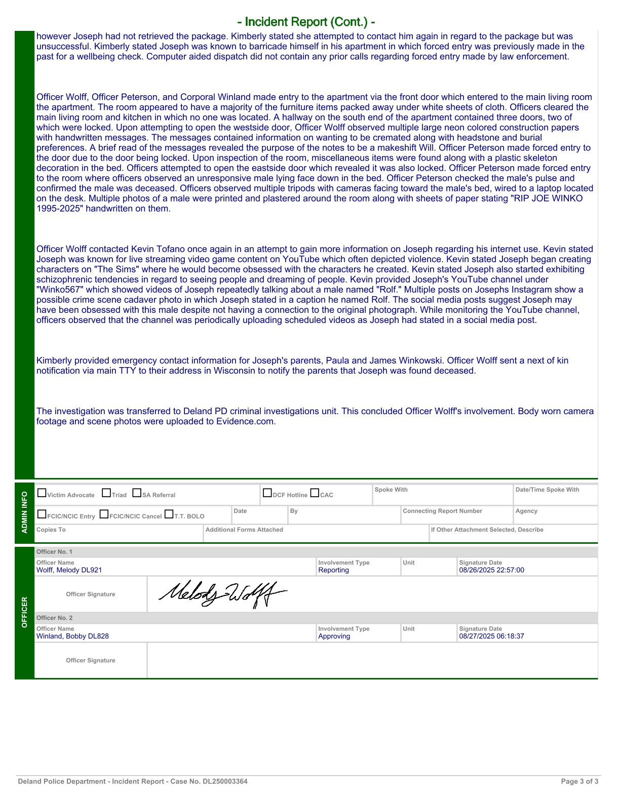 time lapse death video edit. no sound. 1:18 DeLand police department incident report. click/tap images for full size.